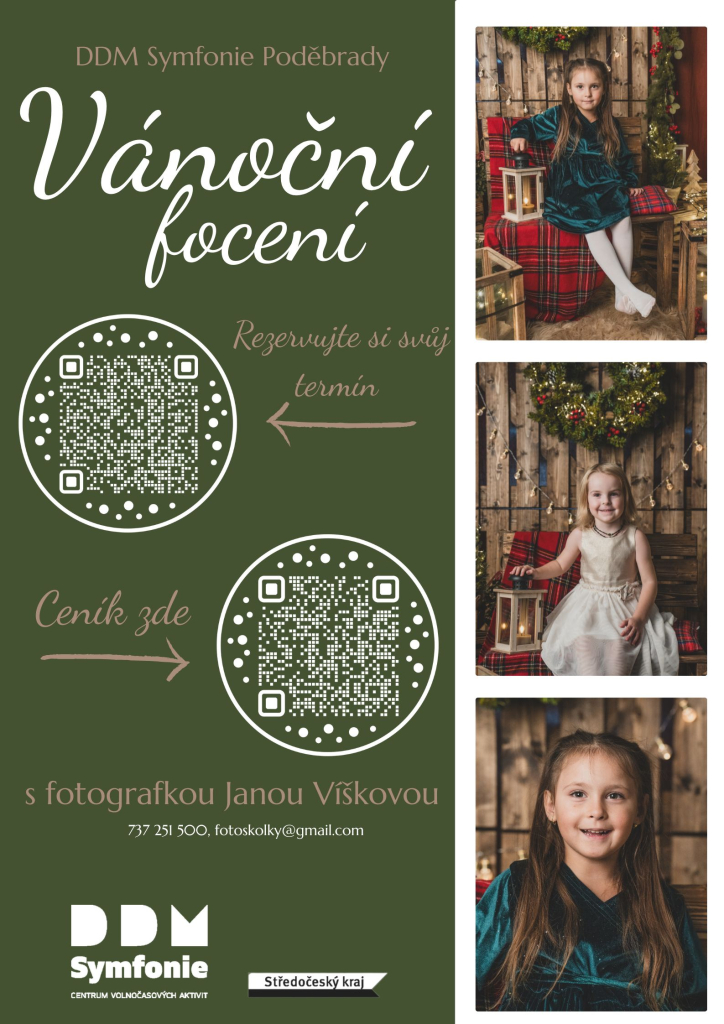 Popis: Vánoční focení s profesionální fotografkou - REZERVACE PŘEDEM NUTNÁ - viz přiložený QR kód nebo přes odkaz v Aktualitách.